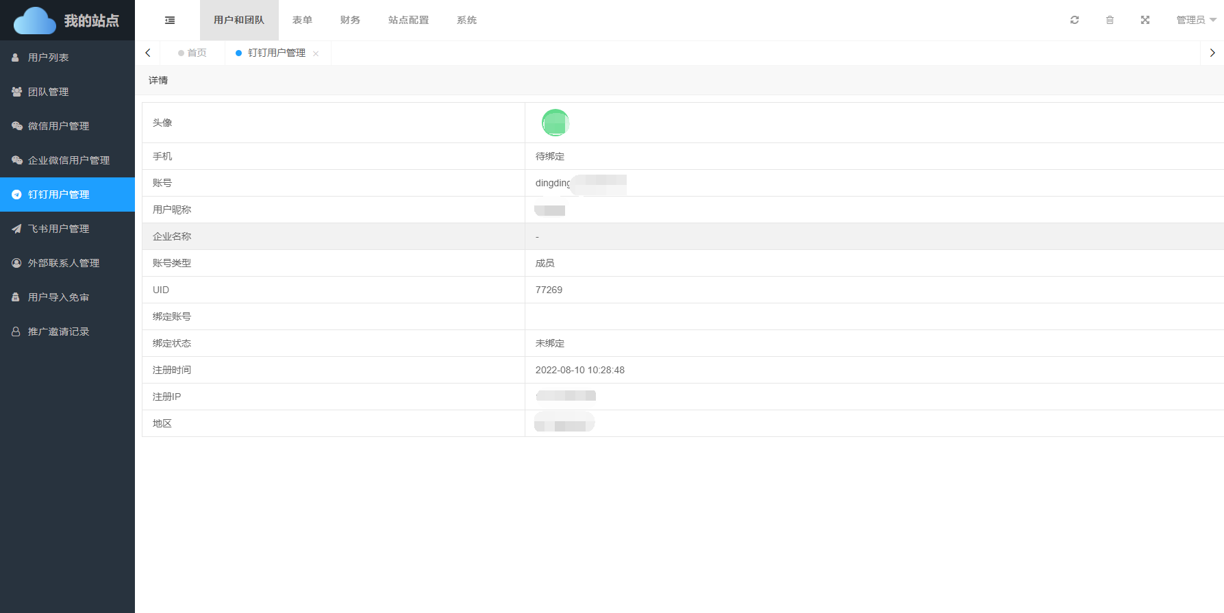 成员、系统管理员 - UID:钉钉账号UID