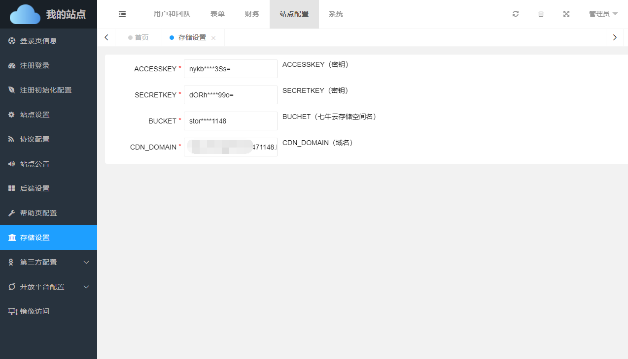 平台存储采用七牛云,当前页面为七牛云存储相关设置页面。