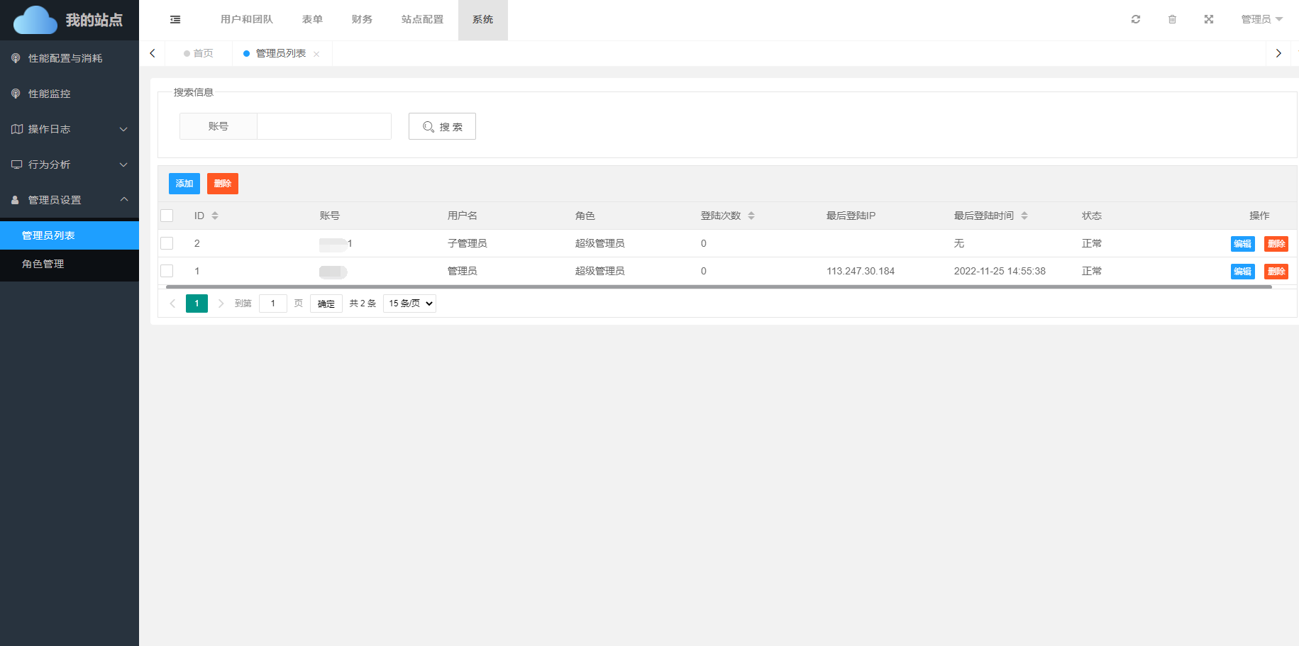 管理员可被删除,删除管理员有两种方式,分别是删除和批量删除。