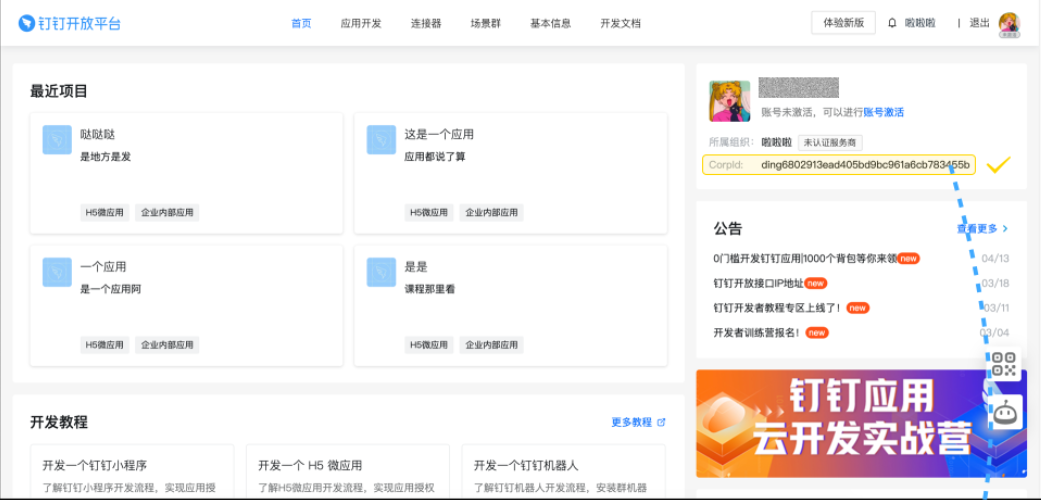 1. 登录钉钉开放平台