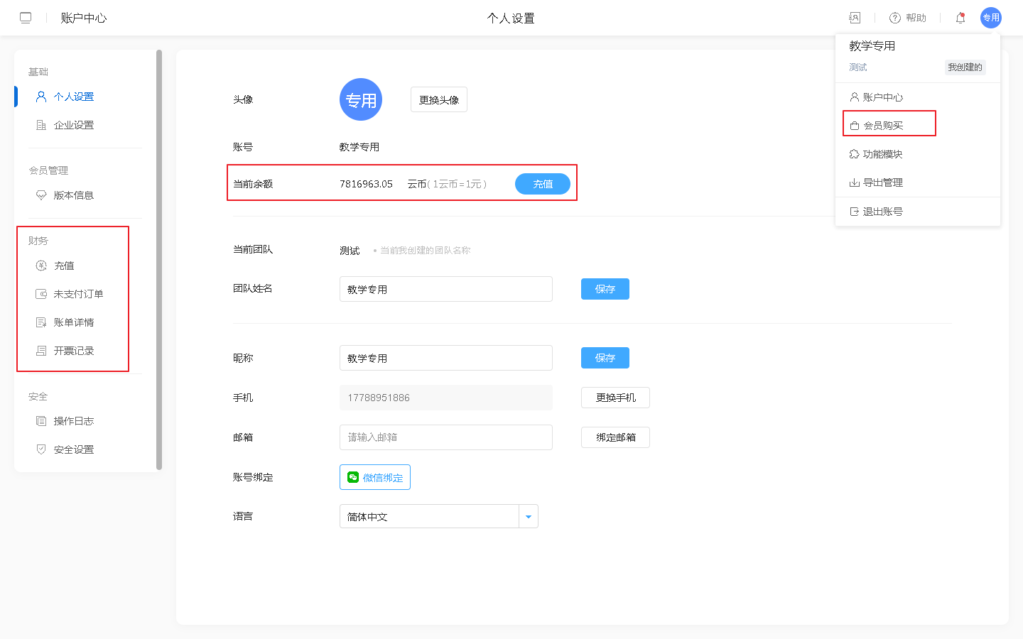 开启后,用户在账户中心可以看到对应的页面以及对应的设置项,在右上角菜单也可以看到会员购买链接。