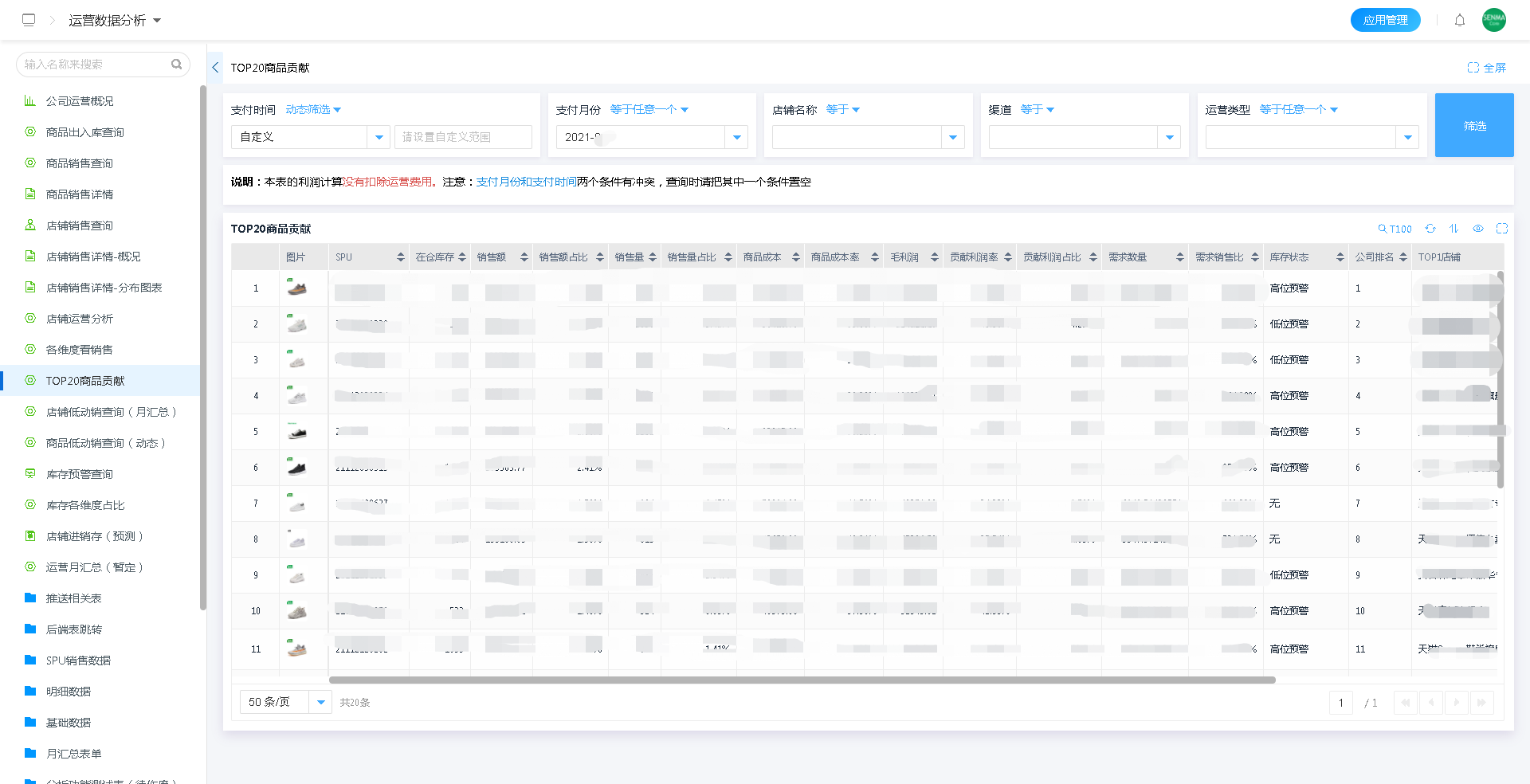 通过使用闪搭平台强大的计算能力,对商品销售数据的分析,在千万级的基础数据中计算出TOP20商品贡献的商品,有助于企业在后续的运营、推广等环节针对性的做出正确的决策。