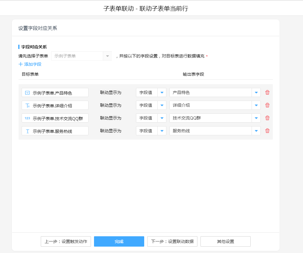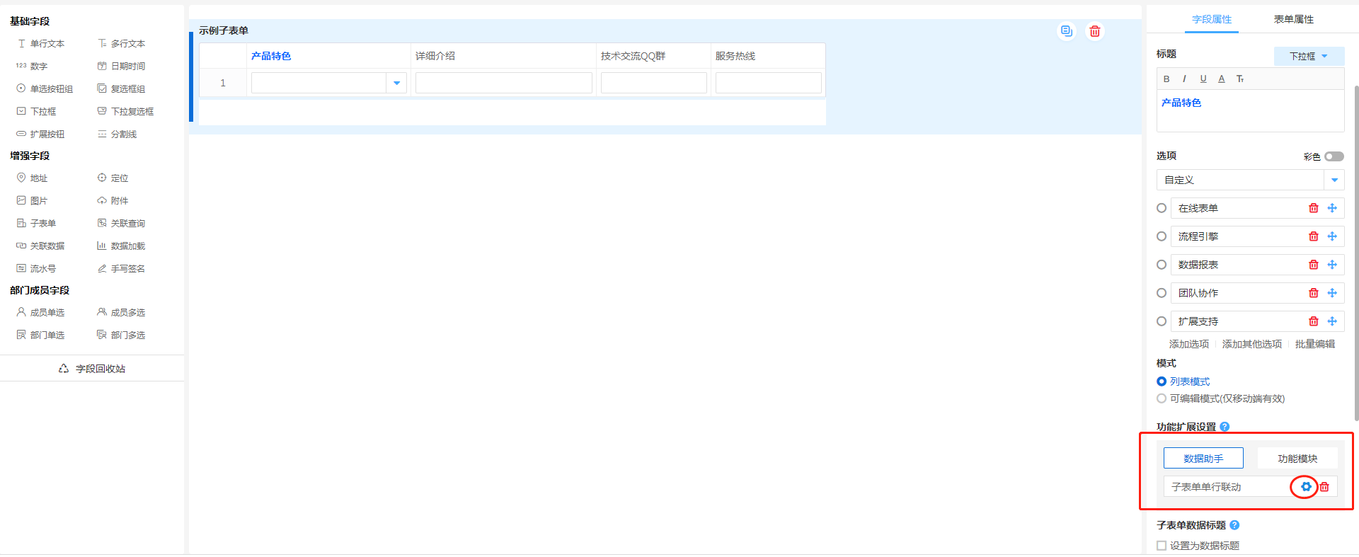 • 子表单单行联动