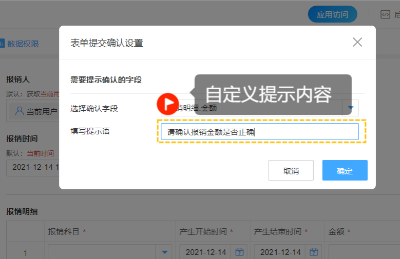 表单可以用于问卷调查、故障报修、自助下单等多种业务场景,但是一般提交人提交后显示的都是同一提示——“提交成功”。但是通过表单提交确认设置,您可以在表单提交前弹出确认对话框进行确认提示,对操作结果而言可以: