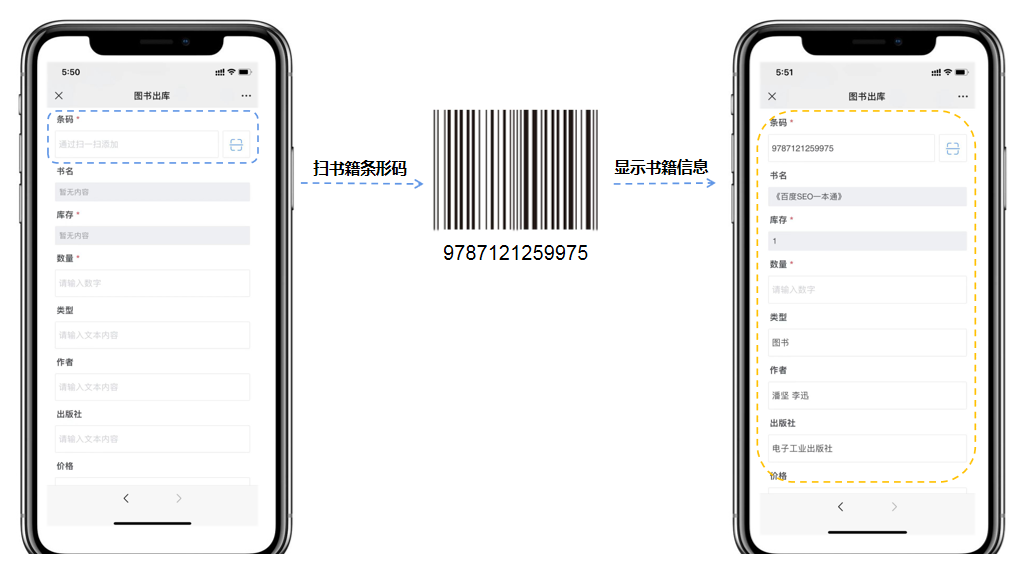 图书录入可以通过扫描条形码一键录入书籍期刊号,保存书籍基本信息后,书籍借阅归还只需要扫描条形码,相关信息会自动弹出。