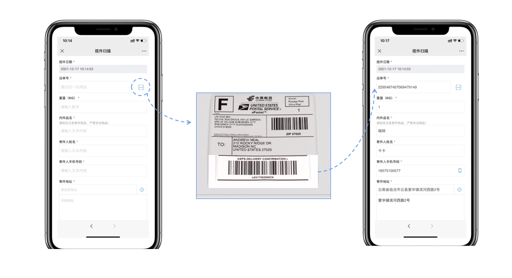 物流行业快递的揽件、收件、派件、签收环节都需要核实快递单号,使用扫码一键录入可以更快更准确地进行信息确认。