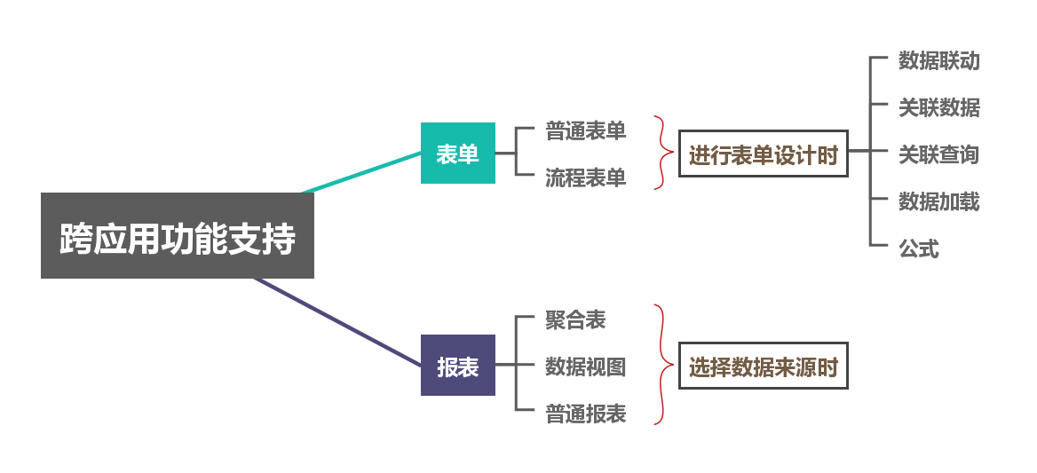 跨应用功能普遍适用于进销存管理、电商管理、物流管理等需要承载大量信息数据行业领域,设置规则支持各类表单数据图表之间的数据调取: