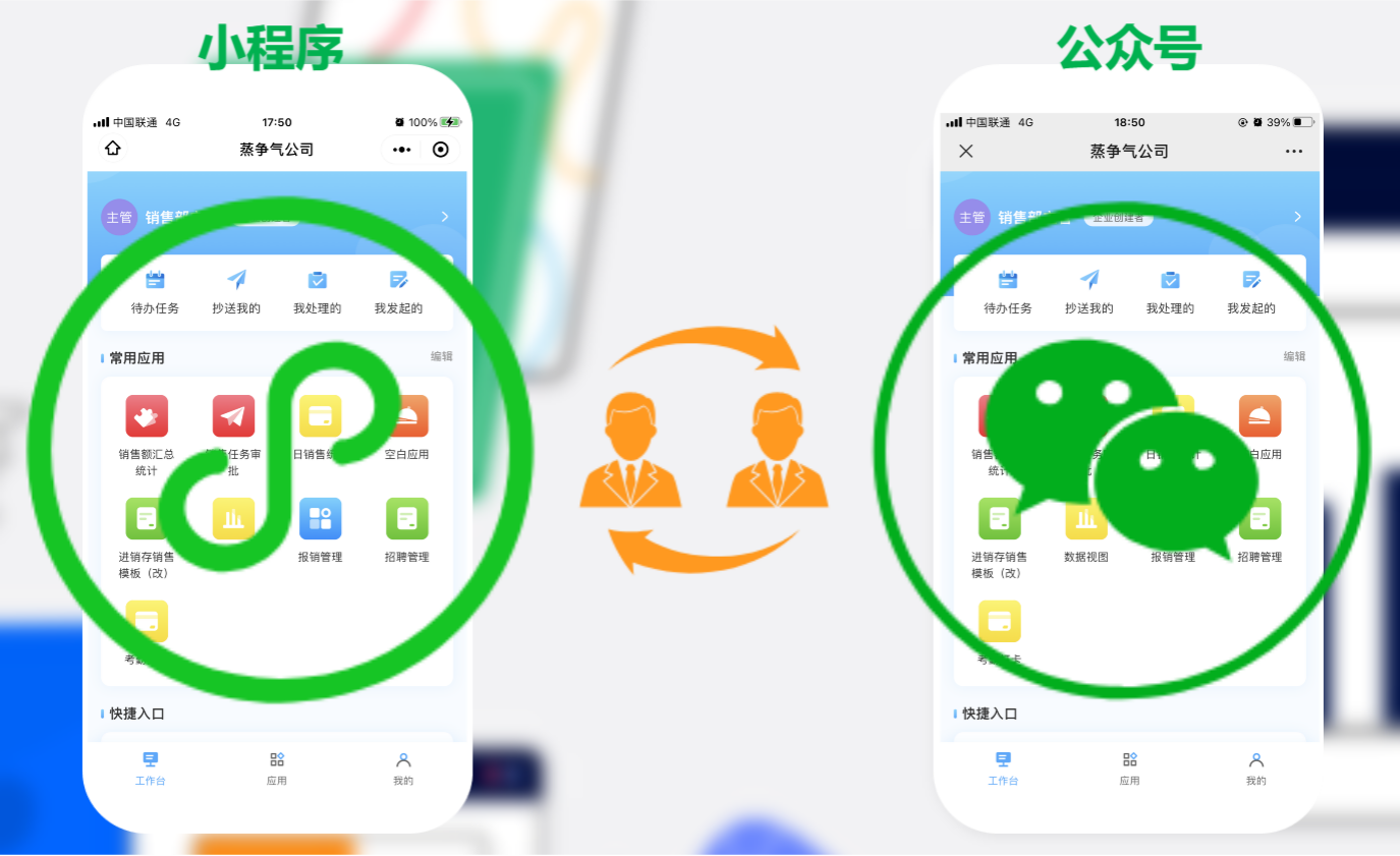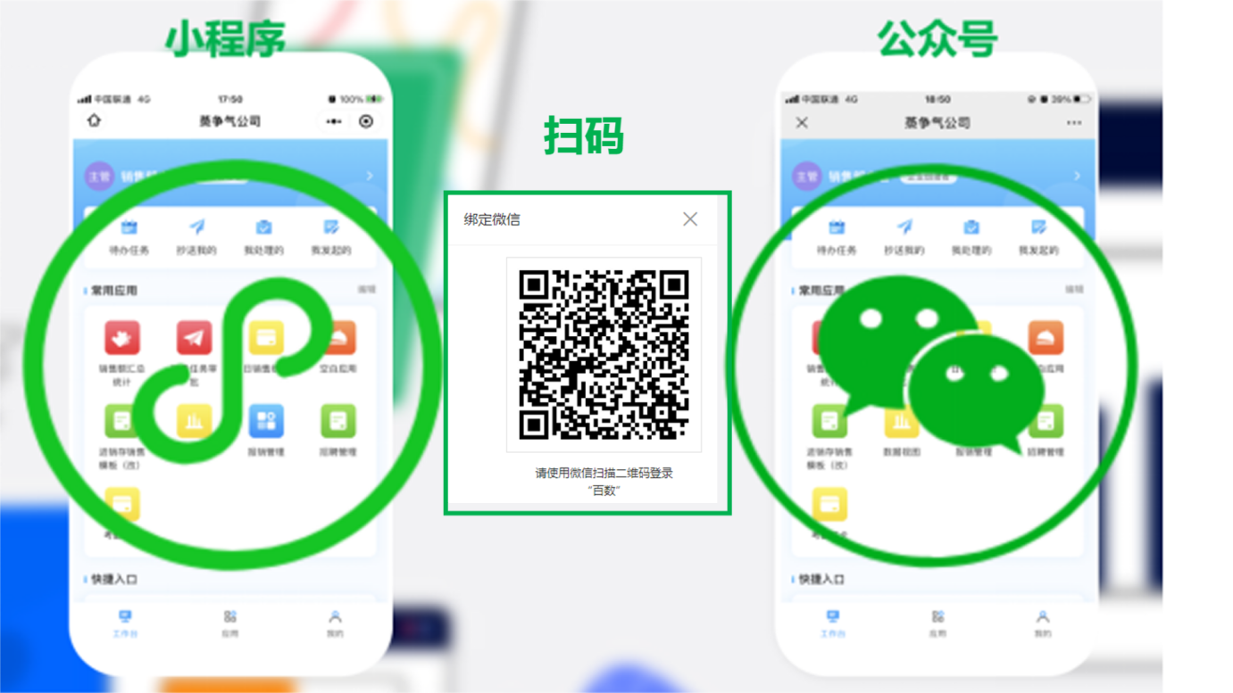 随着业务的复杂性增加,用户对闪搭的使用深度也在不断增强,除了在PC端的使用外,也可以通过与微信绑定的方式在微信公众号与微信小程序中同步使用,进行闪搭业务协作。