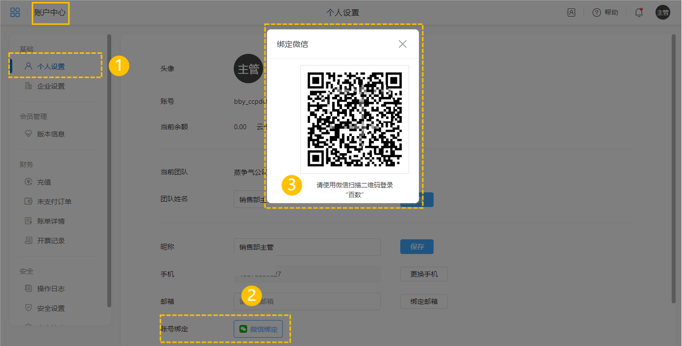 1.在闪搭个人中心将闪搭账号扫码绑定微信