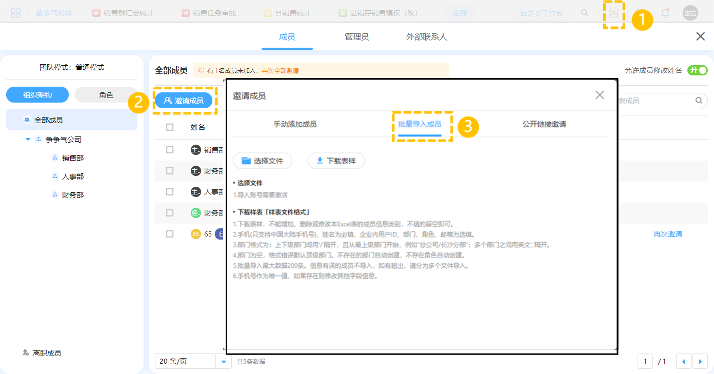 如在开启导入免审设置之前已经进行了手动添加成员或批量导入成员,需要对之前邀请的成员再次邀请或导入,导入后会自动激活该成员。