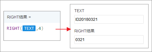 截取文本字段“TEXT”右侧4个字符。