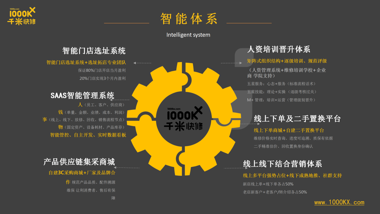 武汉市千米科技有限公司成立于2002年, 是崛起于湖北武汉的首家电脑、手机上门维修服务企业,现公司在全国拥有千米快修直营门店150多家,维修工程师600余人,联盟合作门店近200家。累计为客户提供手机、电脑和智能设备的维修服务数千万次。