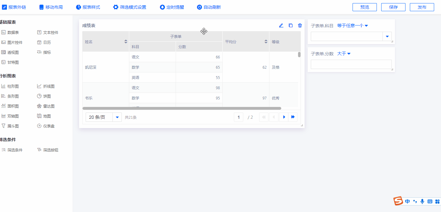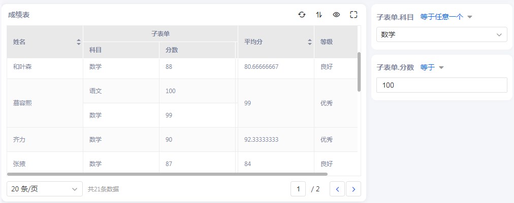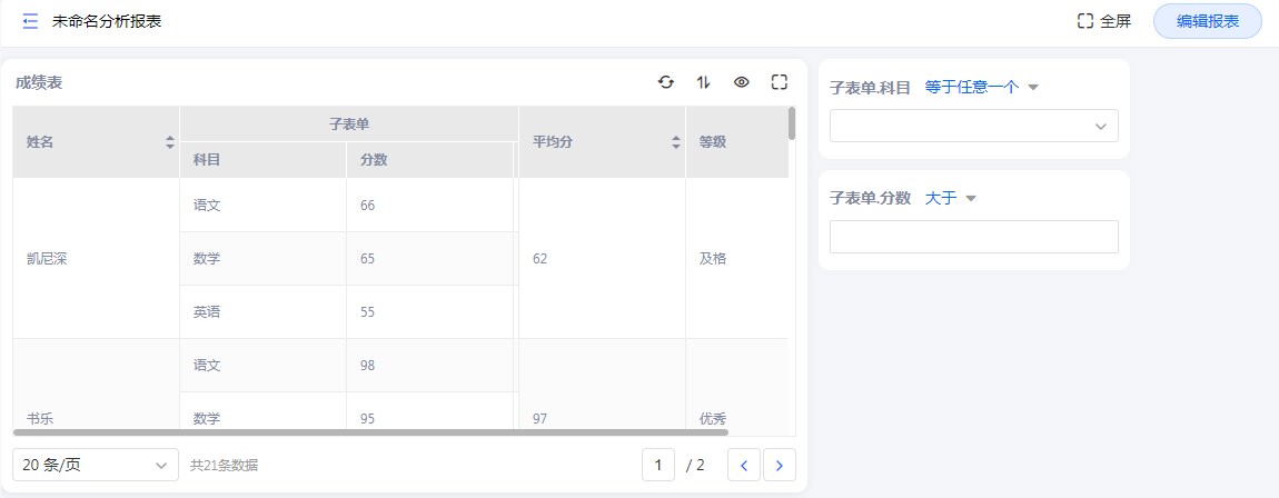 所有/任一筛选条件来筛选数据,满足不同场景的筛选需求。 - 支持缓存筛选条件,下次访问时筛选条件无需输入,操作更便捷。