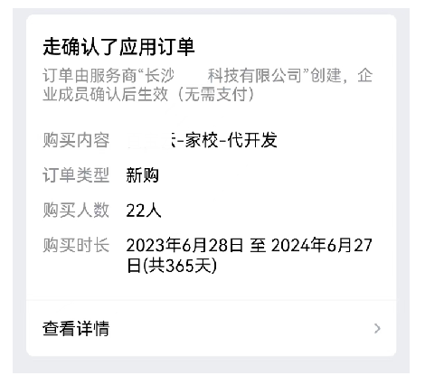 第二步:在企业微信端会收到一条下单信息,点入信息详情确认下单。