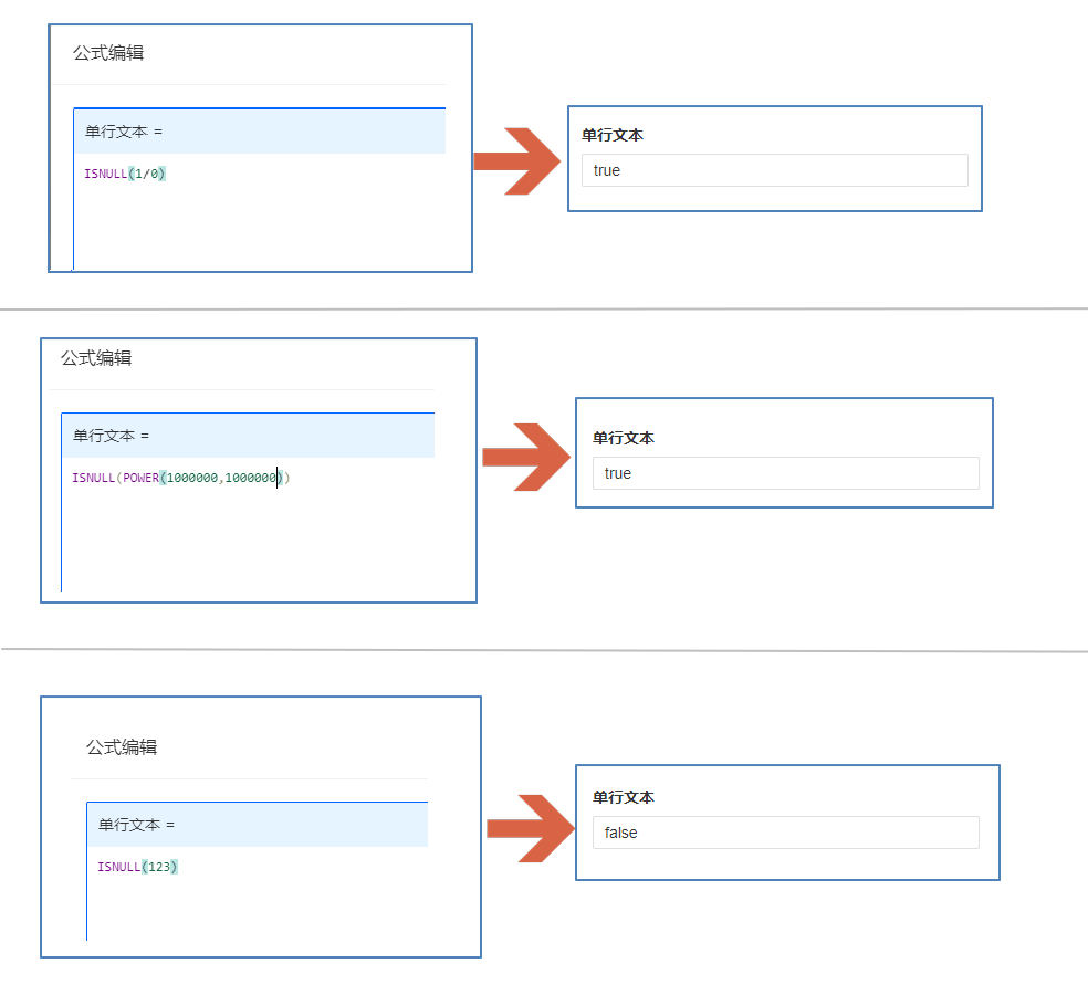 ISNULL(value),表单公式返回值为true或false;视图/助手/数据管理公式返回值为1或0。