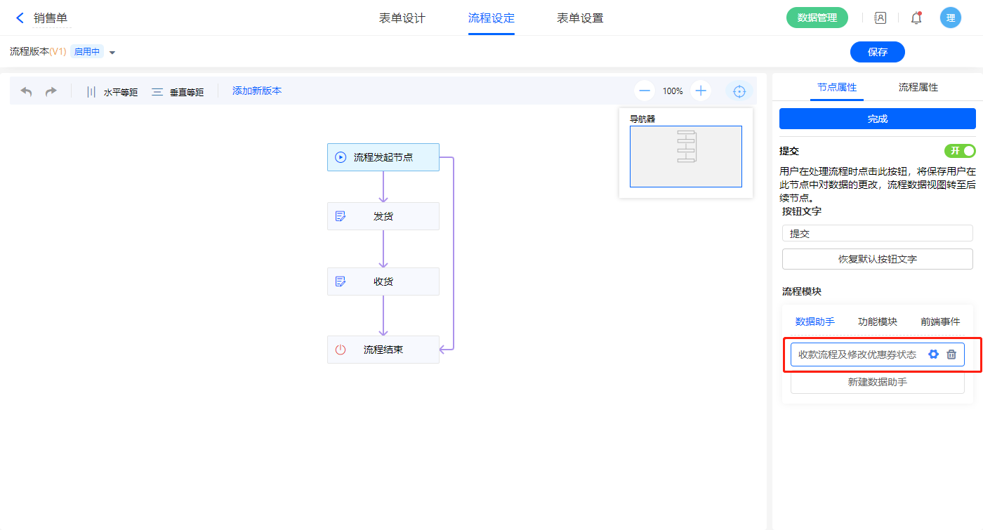 销售单提交后,订单总价大于0,通过数据助手发起收款流程;若销售单抵扣方式为优惠券,提交后也会同时修改优惠券状态为已使用;