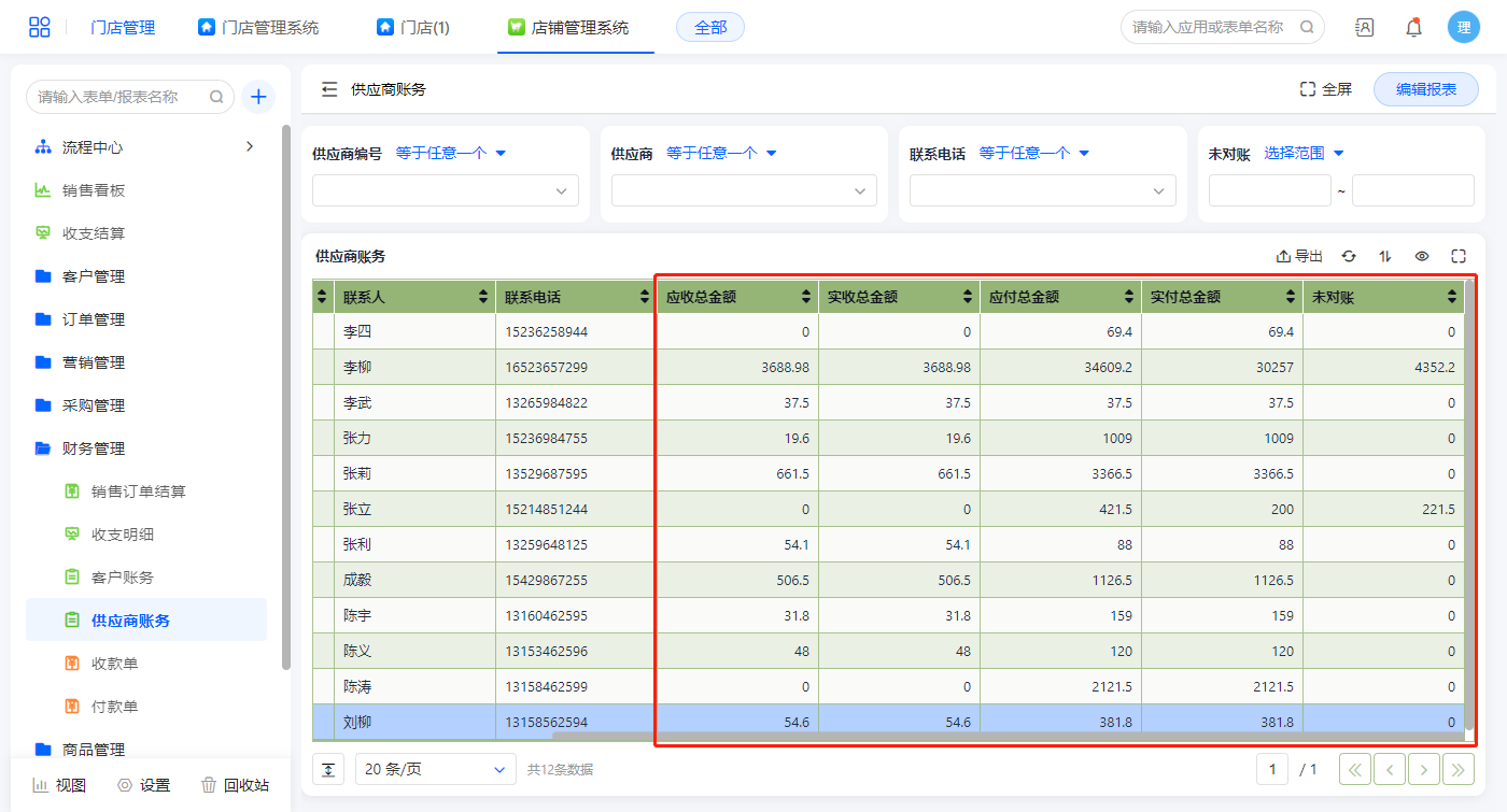储值管理报表展示所有会员的储值信息,该报表的数据源是聚合表(客户储值结算),在此报表可操会员充值,该操作计入储值余额计算;