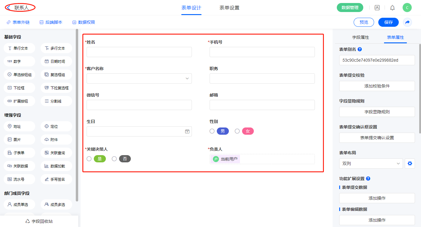 | 客户联系人 | 单行文本 |