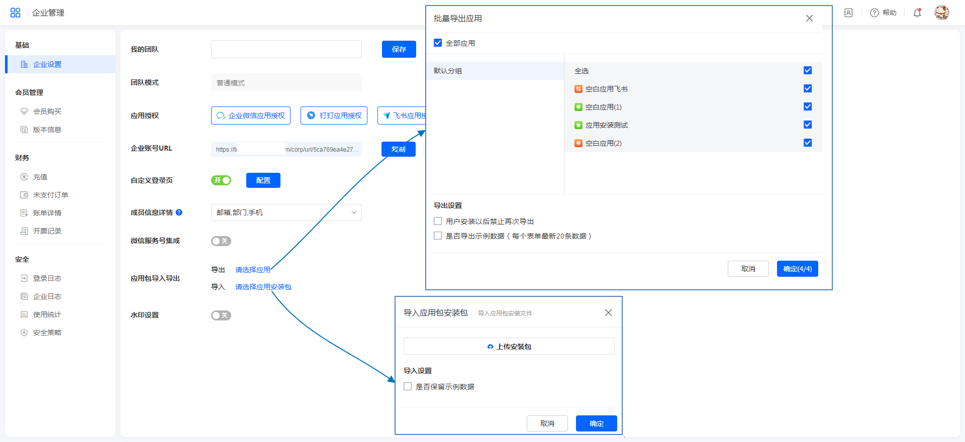 - 团队自己可以在企业管理,设置自己团队下的退出指定链接。