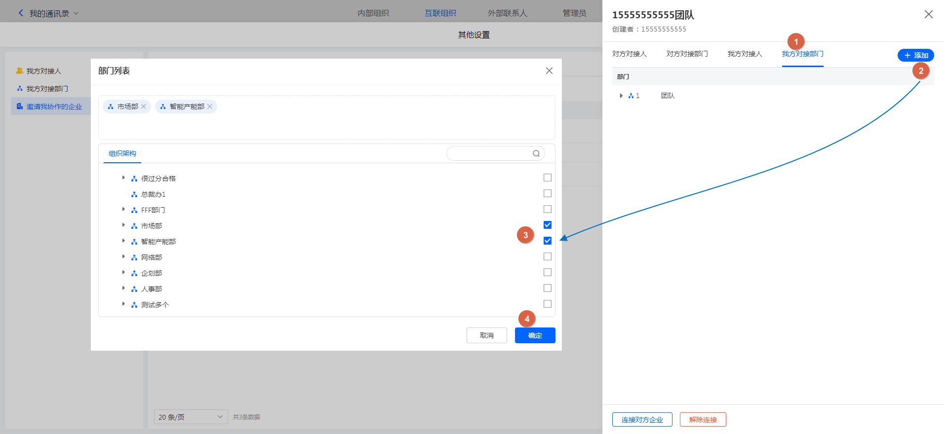 添加我方对接部门