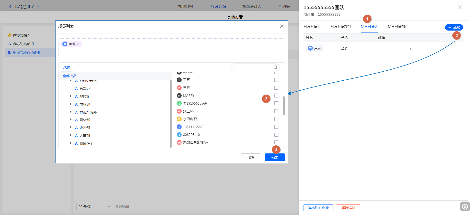查看对方对接人&查看对方连接部门
