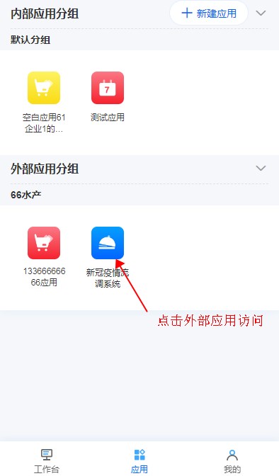 当前团队作为其他团队的互联企业,为了方面快捷的访问快捷应用,对接人可以设计我的工作台,添加外部应用板块,效果如下: