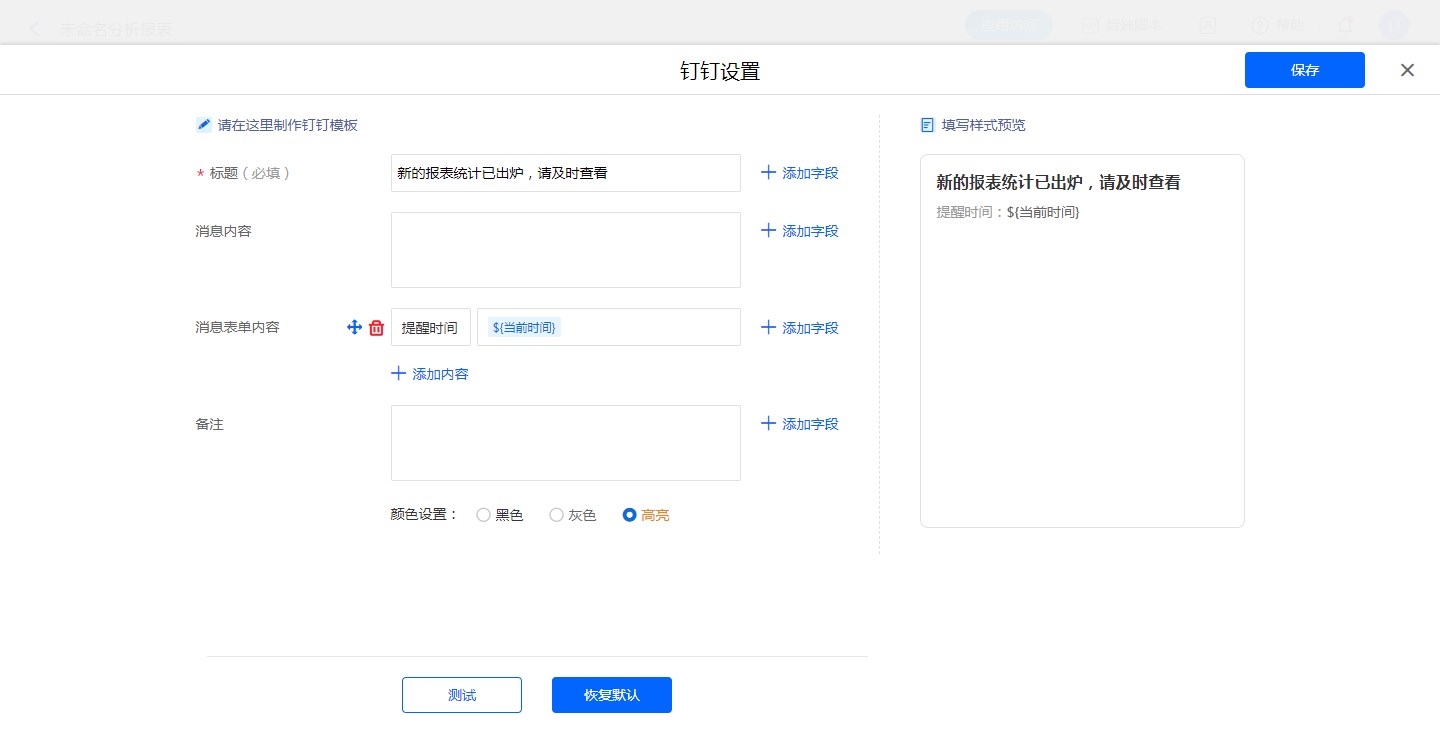 报表定时提醒设置钉钉消息模板