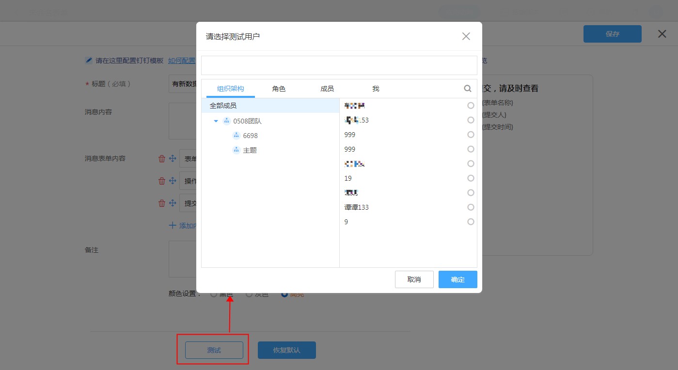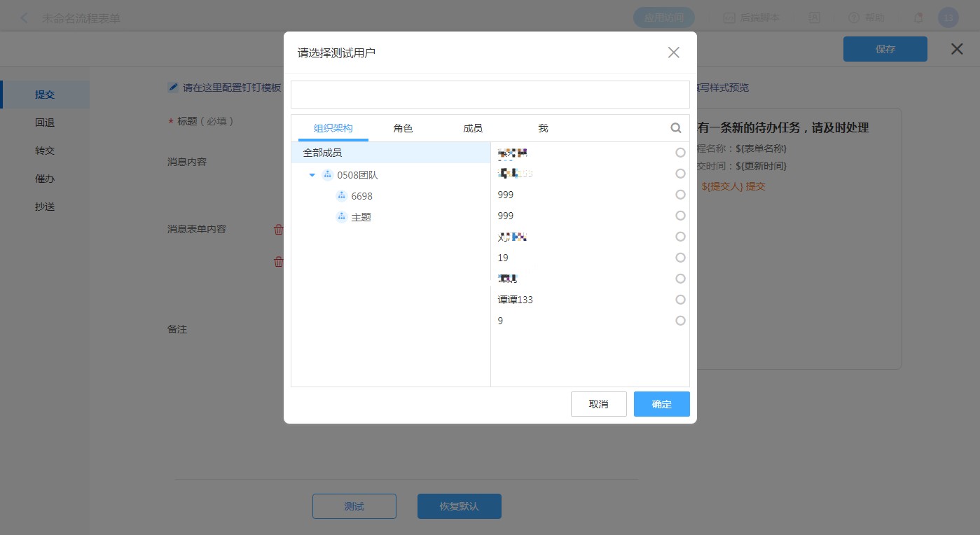 普通表单设置钉钉消息模板