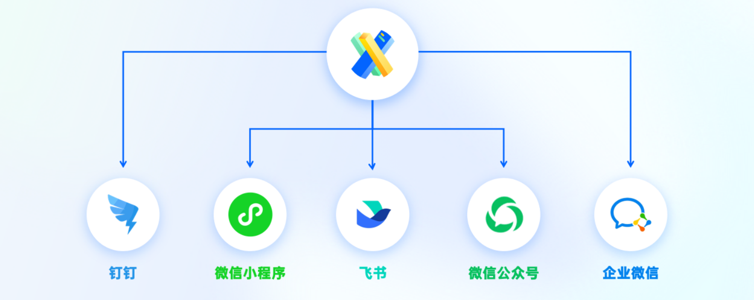 支持对接企业微信、微信公众号、微信小程序、钉钉、飞书等第三方平台,可直接调用第三方平台的通讯录架构。