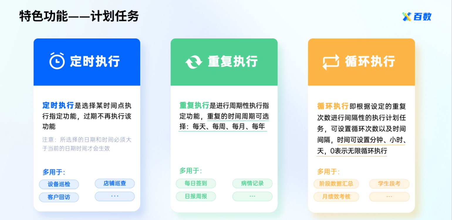 周期性的执行任务的功能,适用一些定时定期刷新数据,发起任务,检验数据,统计数据等场景。