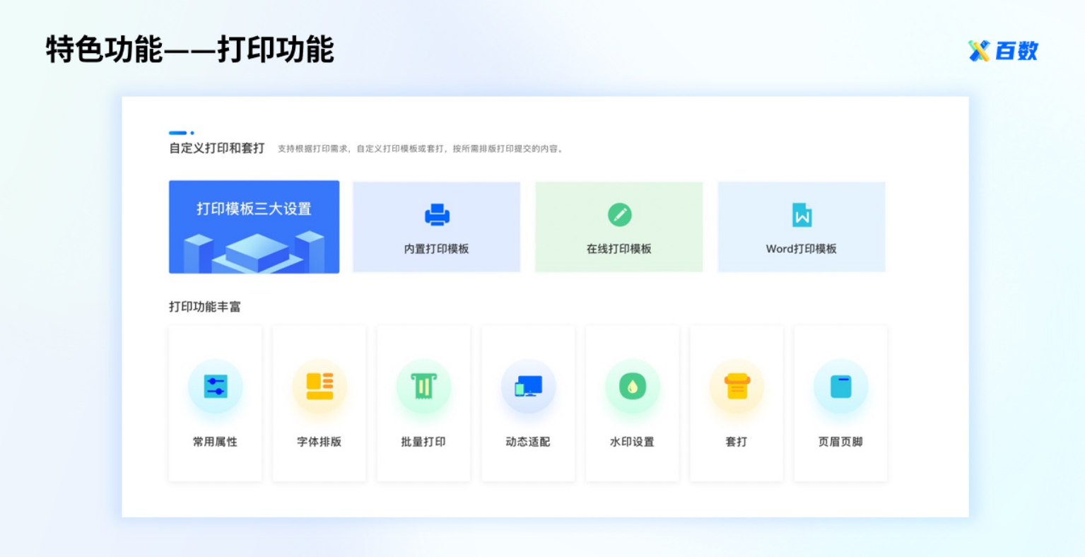 打印时可直接使用系统模版,也可以根据打印需求,自行设计自定义打印模版、打印方式等。