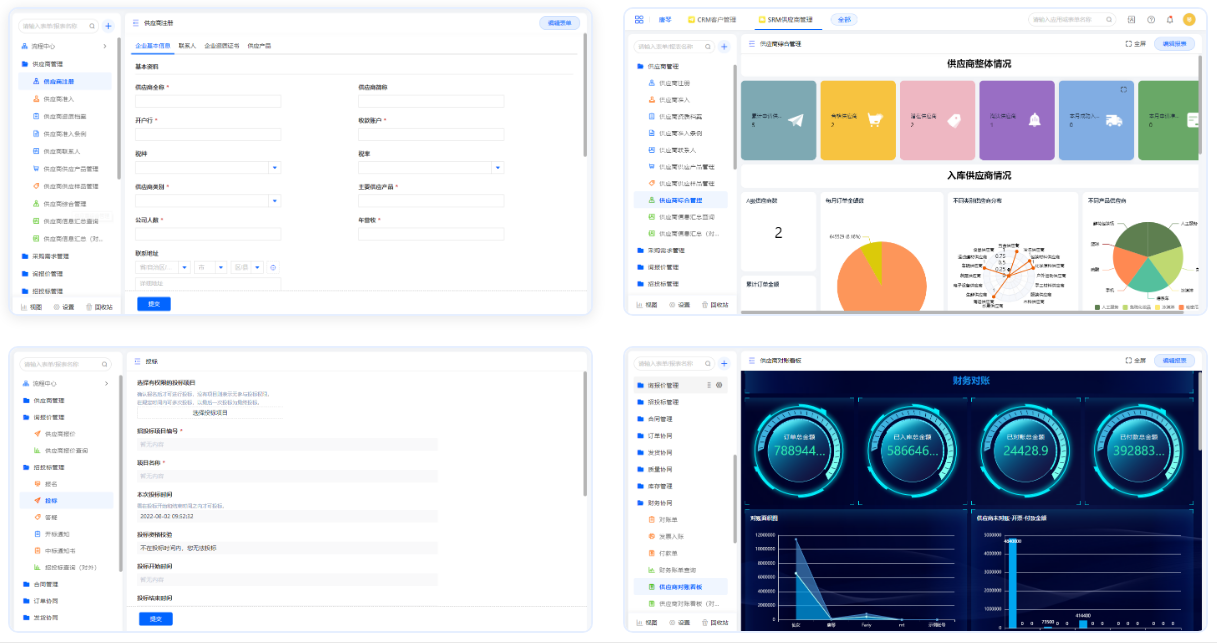 SRM供应商管理提供数字化采购,应用助力企业打破采供双方协作壁垒协作平台,连接企业人、财、物实现企业间完美交付;实现全场景、全流程、全周期的供应链闭环管理。