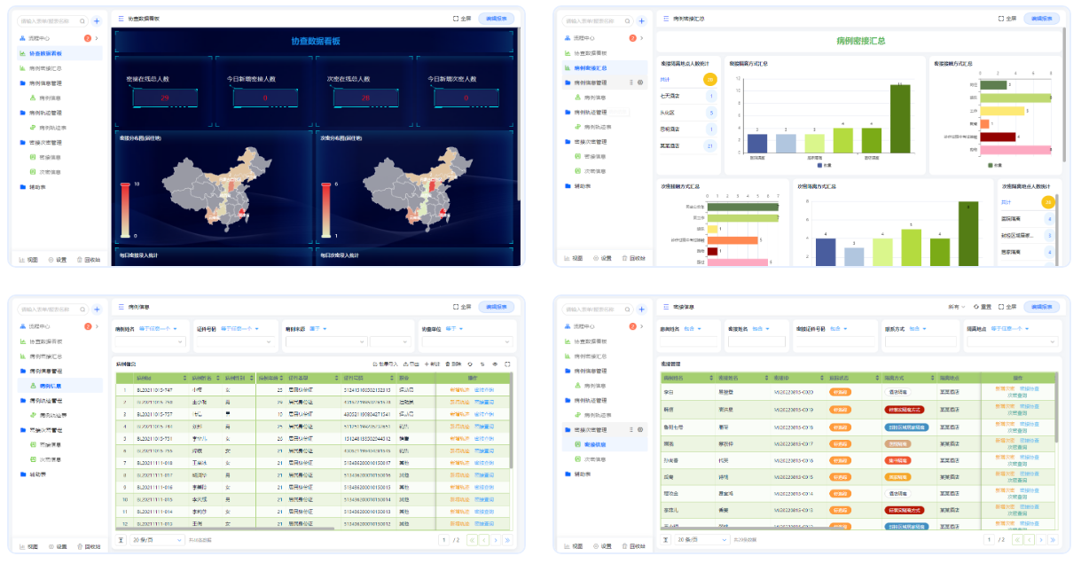该应用适用于调查疫情密接次密人员,防止疫情蔓延,包含病例信息管理、病例轨迹管理、密接次密管理、协查数据分析等。