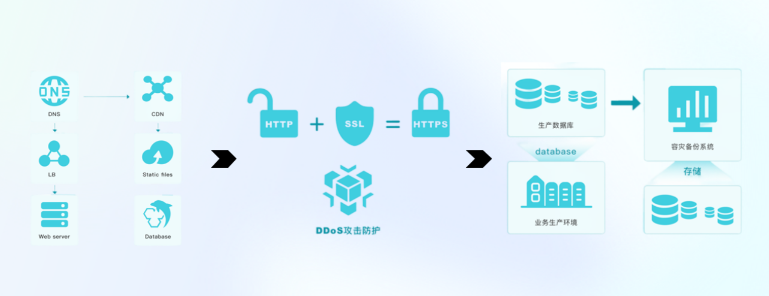 独立服务器,独立存储空间,权威安全认证与成熟的信息安全管理体系,HTTPS加密通讯,三层备份保障,为企业筑起安全、稳定的网络屏障。
