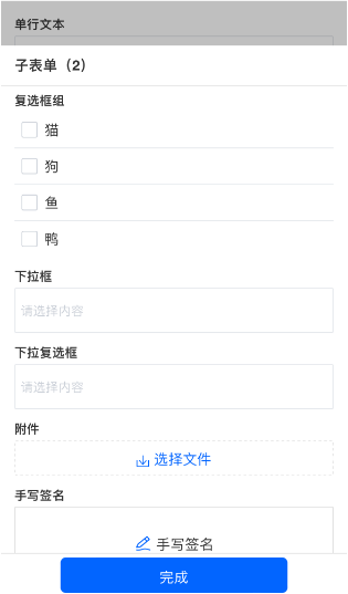 - 子表单行字段 支持数据加载,单行加载的数据只会填充当前行。