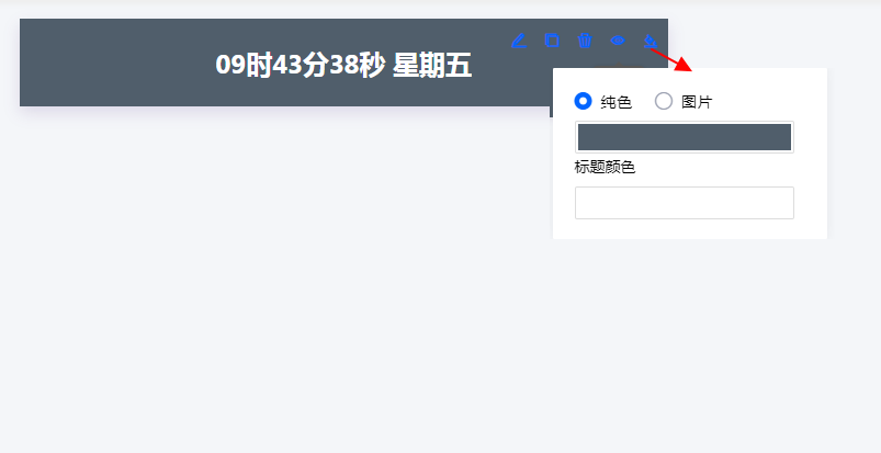 实时时间组件支持设置组件背景(包括颜色背景和图片背景)和字体颜色: