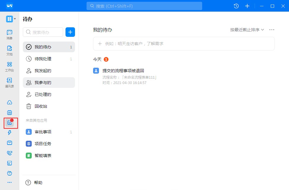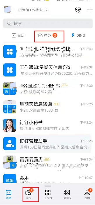 - 在待办或者协作-待办下,查看或审批流程。