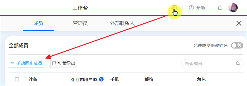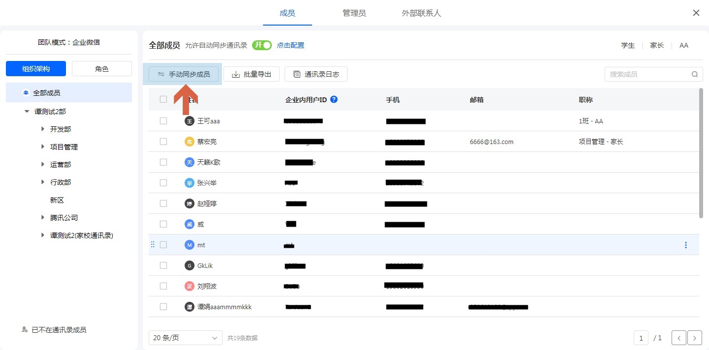 企业微信标签不会触发自动同步,需要在通讯录列表点击手动同步成员