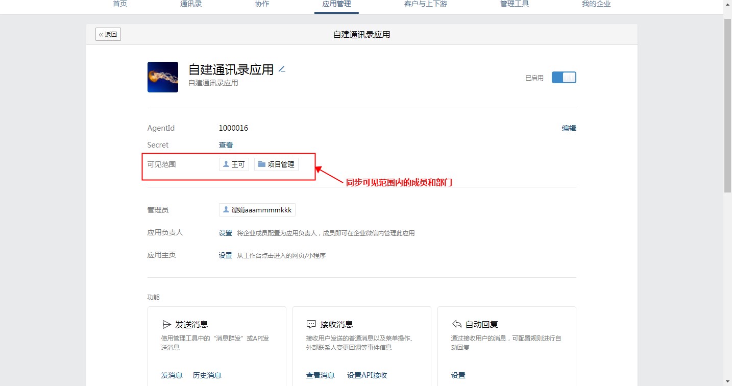 2. 在企业微信后台批量将成员由不可见部门设置为可见部门时,自动同步通讯录后,可能会超过系统成员数量限制,导致系统功能无法使用,此时需手动移除多余数量的成员。