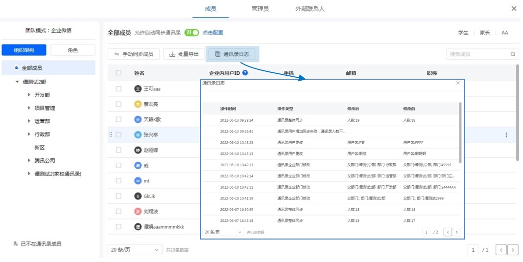 注意:通讯录仅保留最新7天的日志,超过7天的日志会被清除。