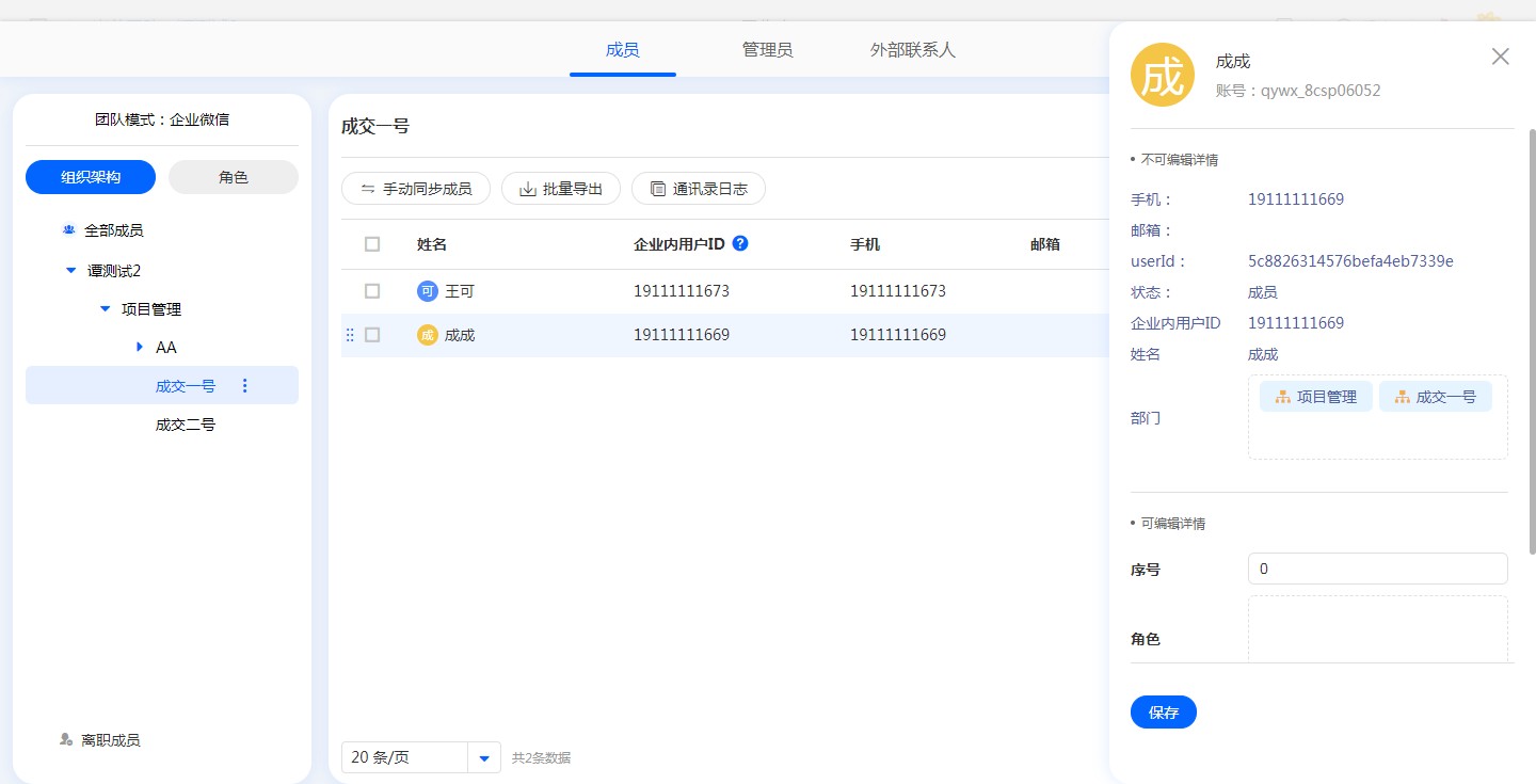 1. 修改企业微信账户(企业内用户ID)同步到系统通讯录后,会清空该用户的角色信息,请谨慎操作。