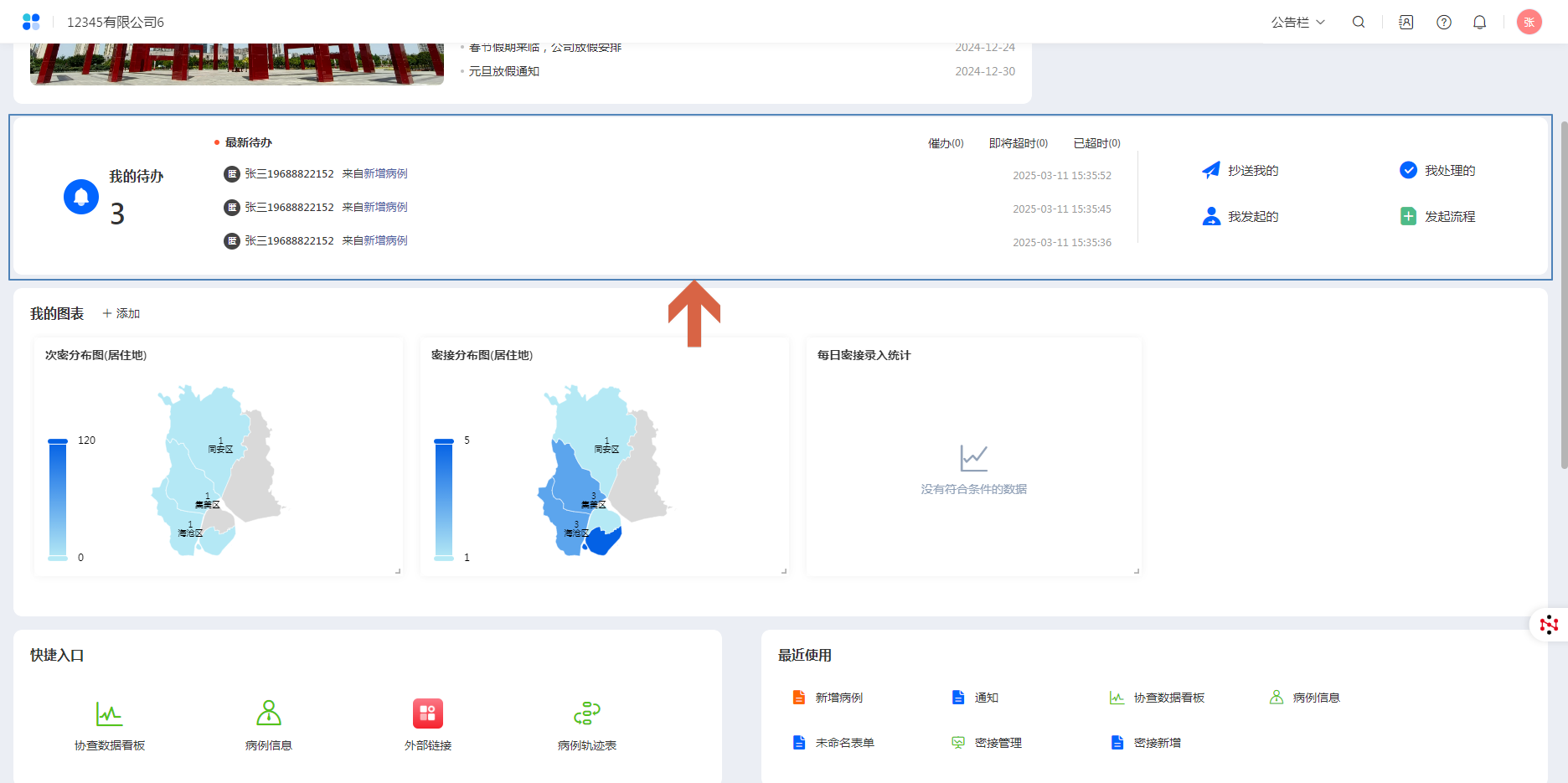 在工作台可以查看所有待处理的流程任务、个人发起的任务以及抄送给个人的相关任务,在这里可以对流程任务进行跟踪处理或督促任务的实行。