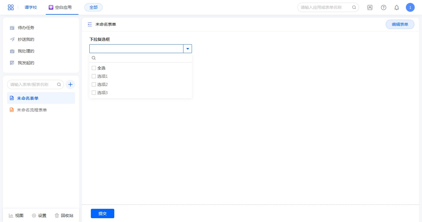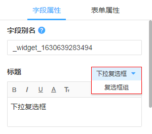 “复选框组”控件字段,可以修改转为“下拉复选框”。