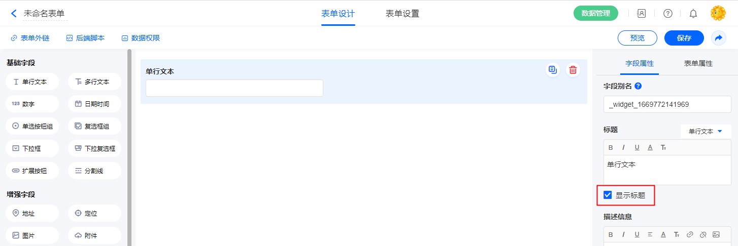 “标题”可以修改字段名称。