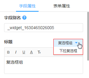 “复选框组”控件字段,可以修改转为“下拉复选框”。