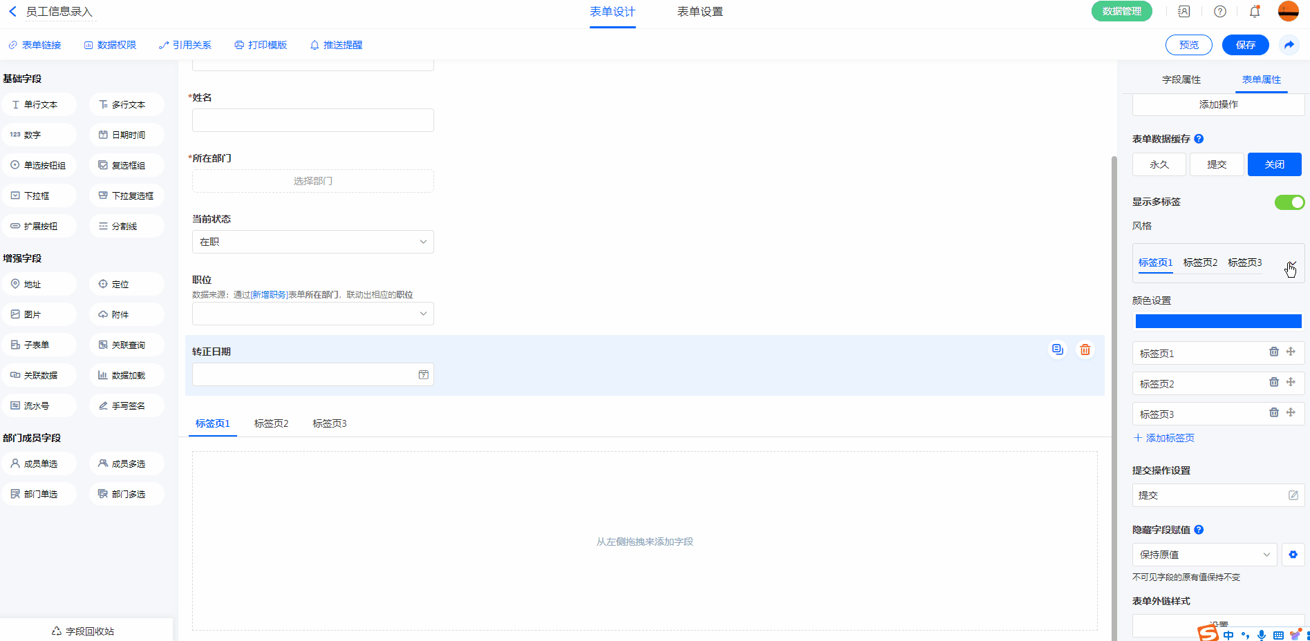 开启表单标签分页功能,方便归纳不同内容。