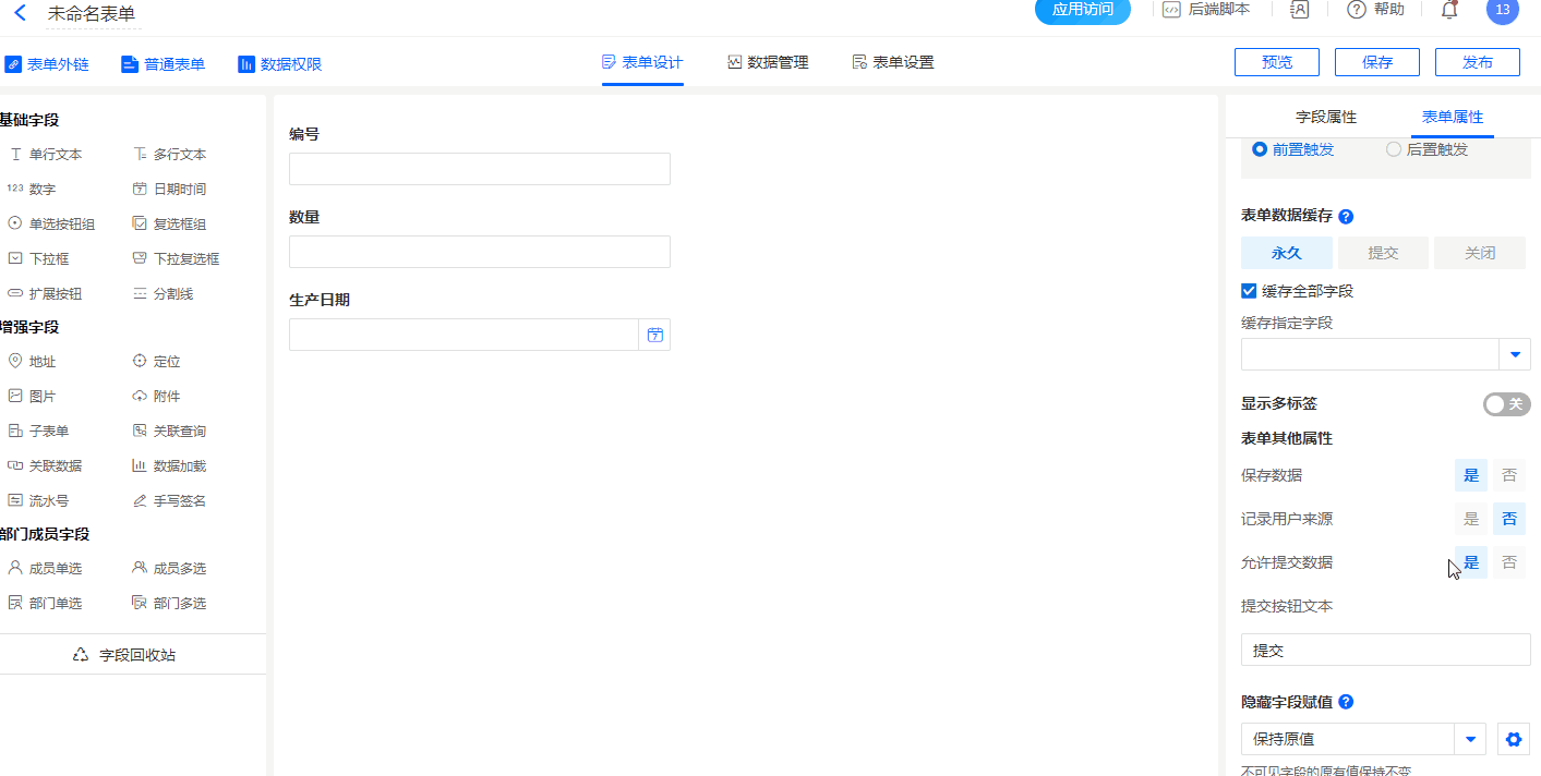 暂存功能,暂存后的数据会在再次打开表单时,自动读取尚未提交的全部/部分#1数据。