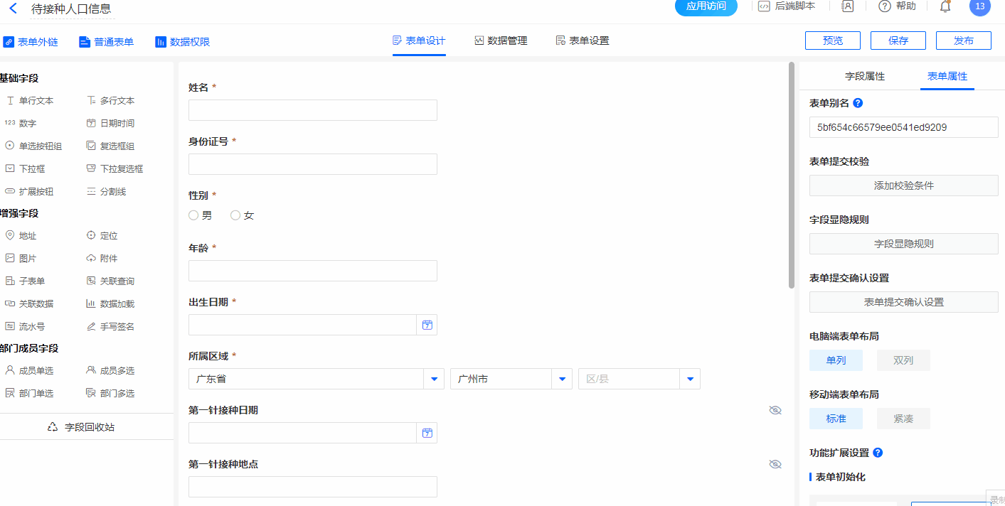 普通表单数据权限管理