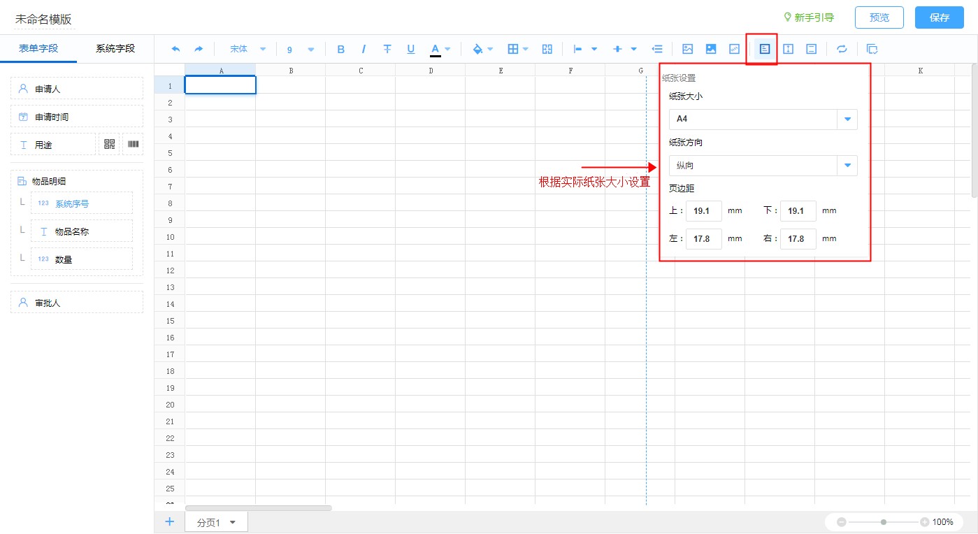 - 设计完成后,点击【预览】按钮,预览打印效果。