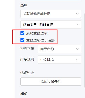2)添加其他选项:勾选后下拉框下拉列表中,会增加<其他>选项。